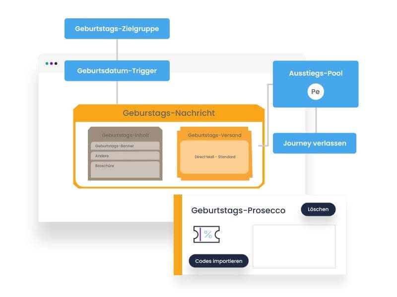 Kampagnenmanagement und -automation: Kampagnen können automatisiert ausgesteuert werden. Dabei können Kampagnen geplant und ad-hoc oder durch zuvor definierte Trigger ausgesteuert werden.