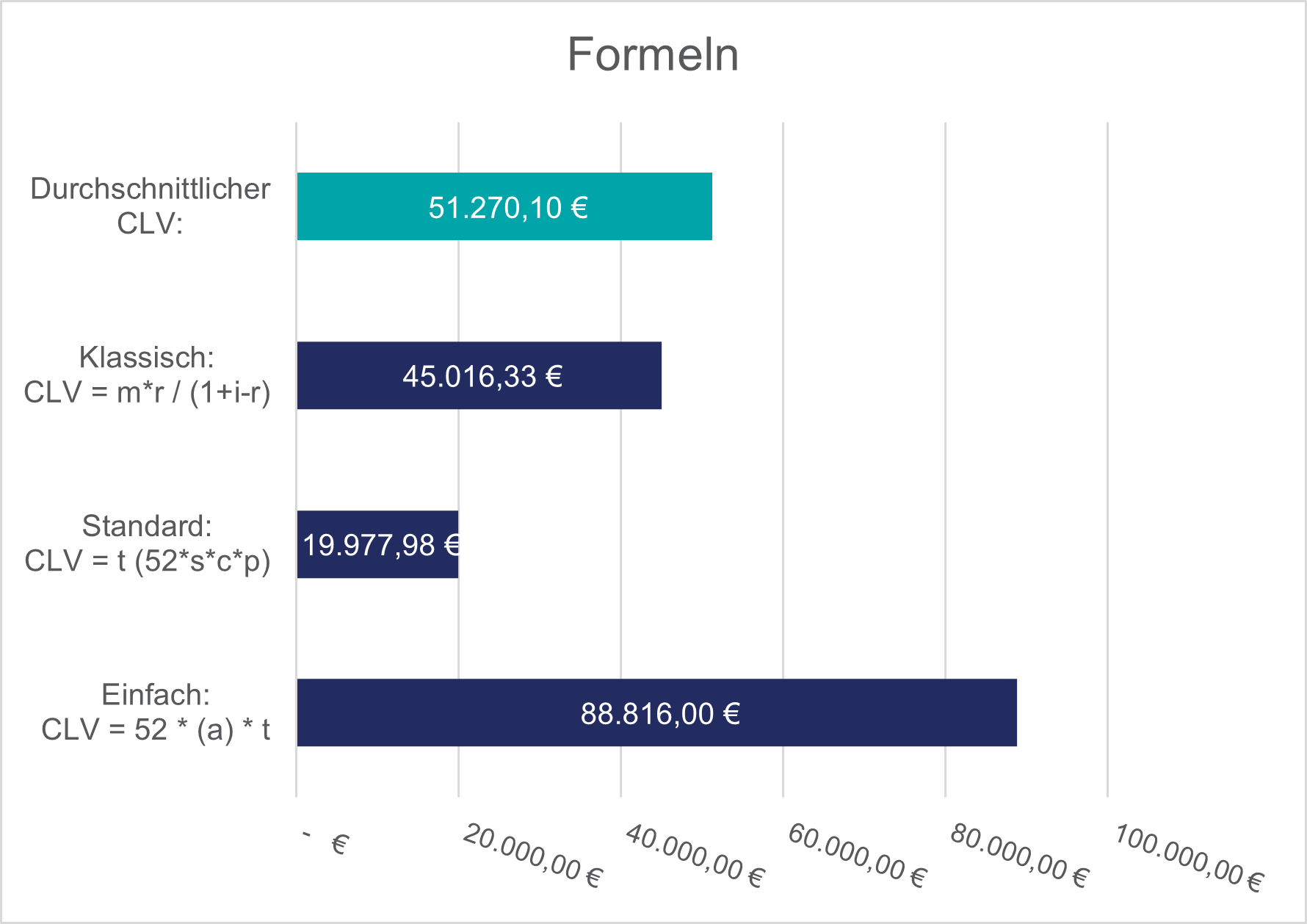 Abschließend kann man sagen, dass die einfache Formel einen deutlich höheren Customer Lifetime Value liefert, als die Standard- oder Klassische Formel. Unabhängig davon, ob eine Kombination oder eine einzelne Formel benutzt wird, kann man sagen, dass je höher der CLV, desto hochwertiger der entsprechende Kunde bzw. Werbekanal.
